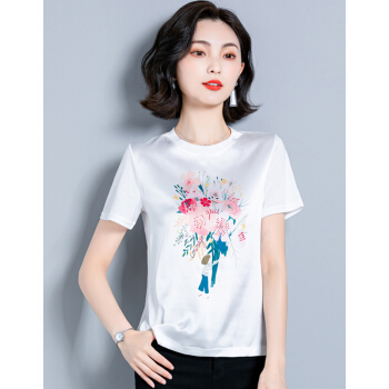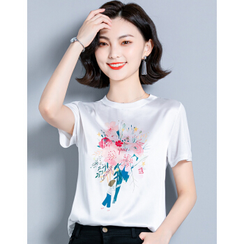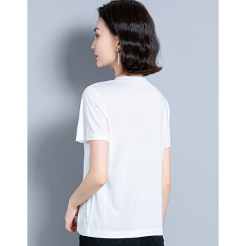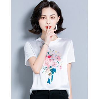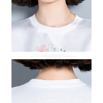 短袖T恤>>婪澈短袖T恤女2020女装夏季新款韩版时尚气质圆领印花衣服t恤女显瘦拼接上衣女 白色 请拍正确尺码
