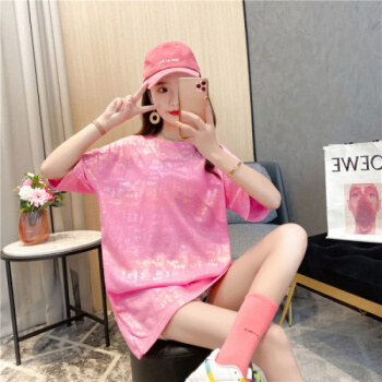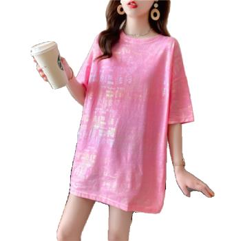 苹纳莎 短袖T恤女韩版宽松2020夏季新款时尚个性中长款亮闪闪上衣大码女装打底衣服潮 桔色 L