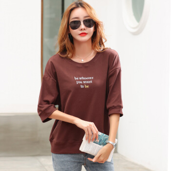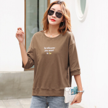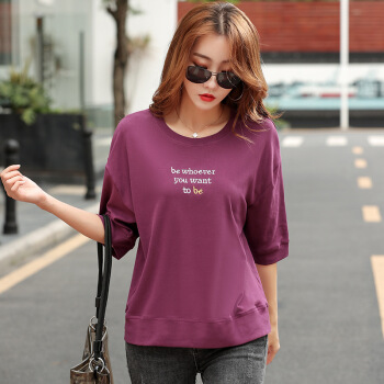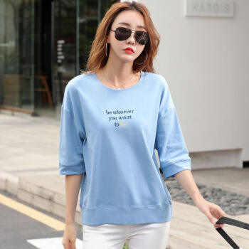 薇妃妙短袖气质t恤女2020夏季新款时尚宽松显瘦百搭体恤衫 天蓝色 L