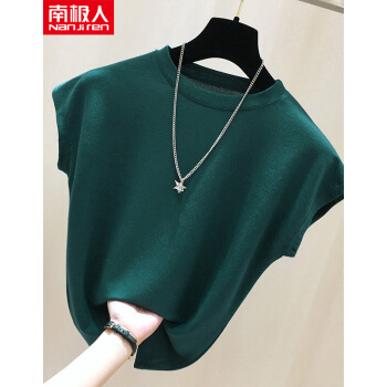 南极人 冰丝短袖t恤女夏装新款2020韩版时尚ins针织打底衫内搭宽松薄款上衣外穿体恤潮 N1-NRC402-1922-绿色 M