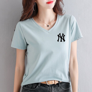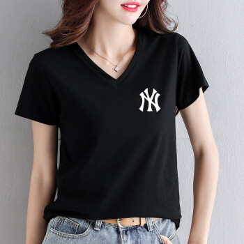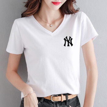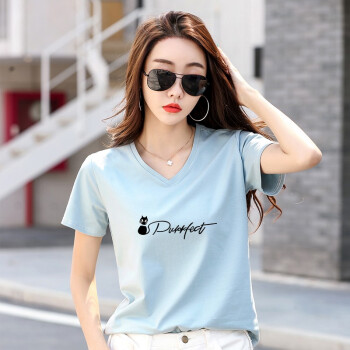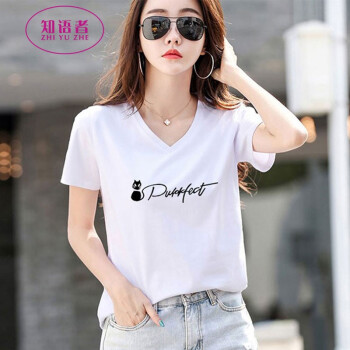知语者女装短袖t恤女宽松体恤大码显瘦上衣2020夏季新款百搭韩版V领印花时尚纯色棉质t桖打底T恤女 8865V领白色 L《105-115斤》 |