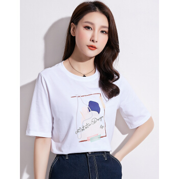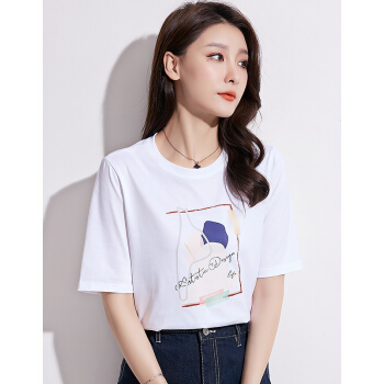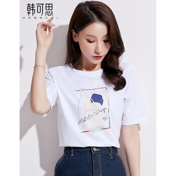 韩可思 纯棉短袖t恤女2020春夏装新款韩版时尚宽松百搭休闲女装学生上衣女打底衫 XX2058 典雅白 请拍正确尺码 |