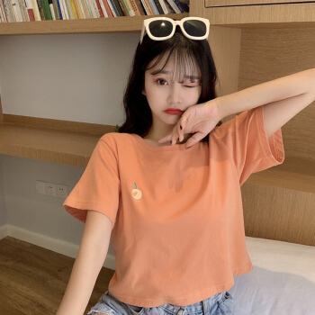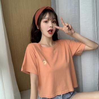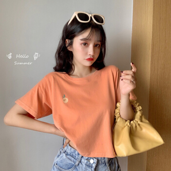 短袖t恤女ins潮网红2020夏季新款韩版修身显瘦体恤纯色纯棉短款上衣秋款 橘色 S
