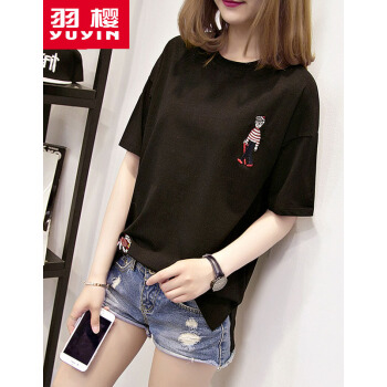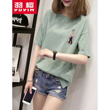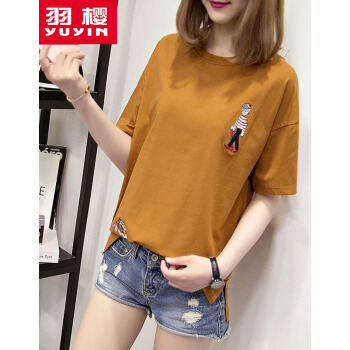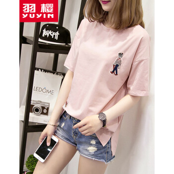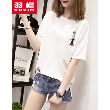 羽樱 短袖t恤女2020夏装新款大码女装宽松韩版学生棉T恤半袖上衣服女 7338 白色 L