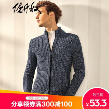 佐丹奴针织衫男半高领男士毛衣外套开衫线衣男外衣01057707 70绞花雾蓝色 加加大码(180/108A) |