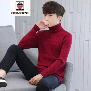 遥渠高领毛衣男秋冬季加厚韩版修身2020新品学生圆领针织衫外套男装 黑色 L