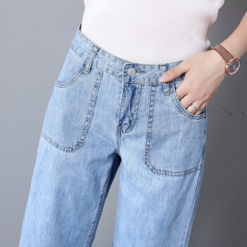 沫澜仟衣阔腿牛仔裤女2020夏季薄款高腰显瘦直筒垂感宽松休闲九分裤女时尚百搭八分裤子女 浅蓝八分 25码 |