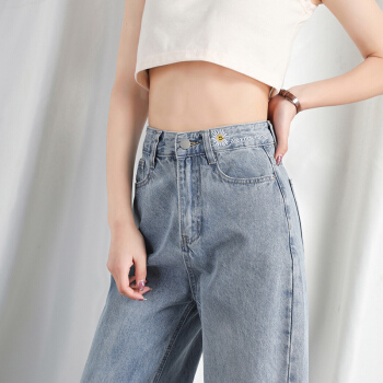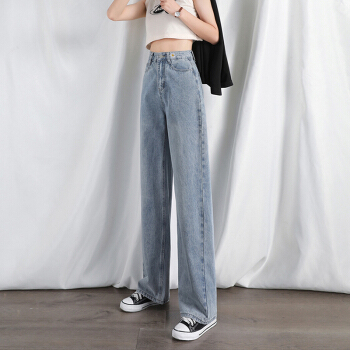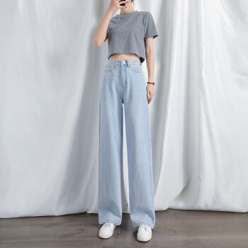 高腰阔腿裤泫雅牛仔裤女2020年新款夏季薄款直筒宽松垂感拖地裤子 复古蓝 XXS 75-85斤