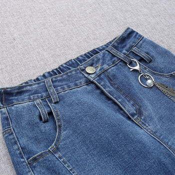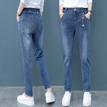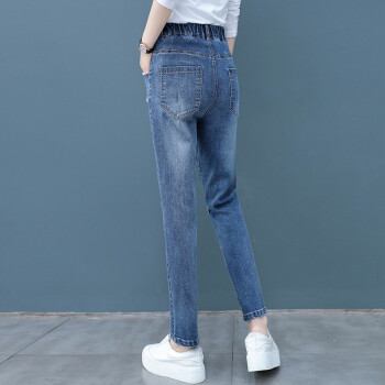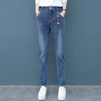 爱路喜休闲牛仔裤女2020新款韩版女装哈伦裤宽松高腰直筒裤子女潮 蓝色 L/27
