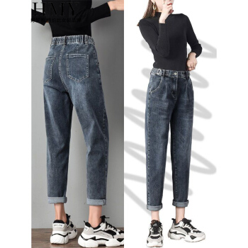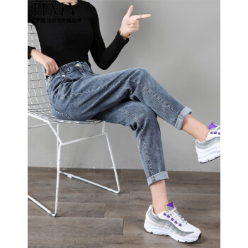 牛仔裤>>【好质量】好梦雅 高腰牛仔裤女裤宽松2020春秋季薄款新款韩版哈伦裤宽松显瘦萝卜女裤子直筒泫雅老爹裤 228款【蓝灰色】 28 【建议105斤-115斤】