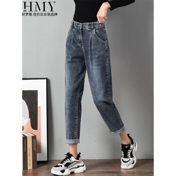 【好质量】好梦雅 高腰牛仔裤女裤宽松2020春秋季薄款新款韩版哈伦裤宽松显瘦萝卜女裤子直筒泫雅老爹裤 228款【蓝灰色】 28 【建议105斤-115斤】 |