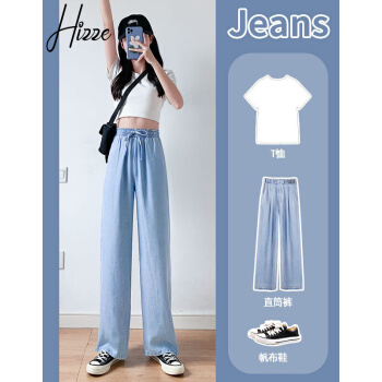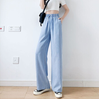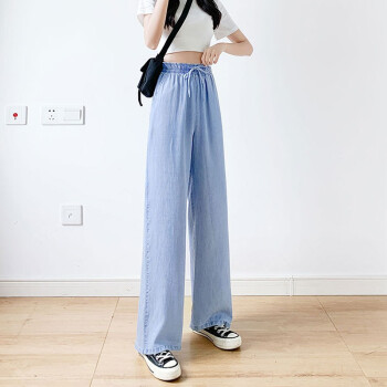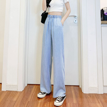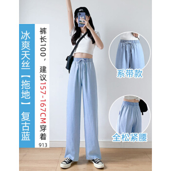 牛仔裤>>【精选女裤】Hizze天丝牛仔阔腿裤女裤2020年夏季新款薄款高腰垂感直筒长裤韩版宽松显瘦百搭 复古蓝【拖地裤】 请拍正确尺码