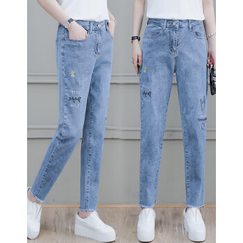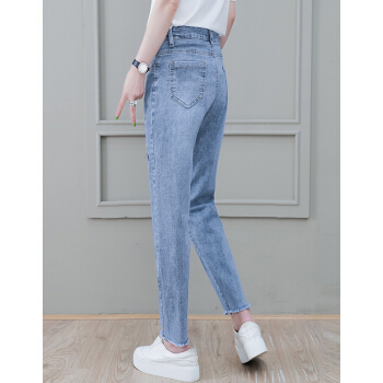 芳帛休闲牛仔裤女高腰宽松显瘦2020夏季新款韩版女裤九分直筒小脚裤潮 蓝色 L