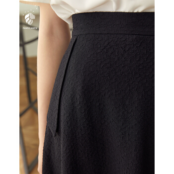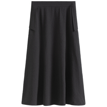 范思蓝恩 2020夏季新款肌理感高腰半身裙女百搭短裙雪纺a字裙子女 黑色 L