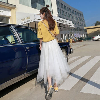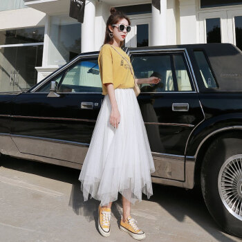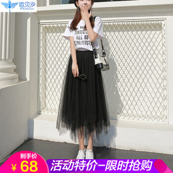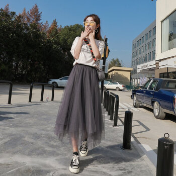 网纱半身裙女春夏季中长款学生大摆纱纱裙新款百褶中长裙仙女裙子 黑色 均码