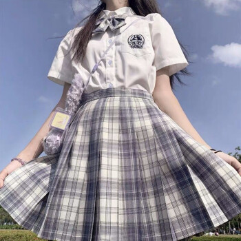 电竞少女jk制服温柔一刀格裙套装连衣裙中牌制服馆裙子学生校服百褶裙兔姬舍短裙A字裙包臀半身裙夏女 (格纹裙+刺绣上衣+领结)#1600 M |