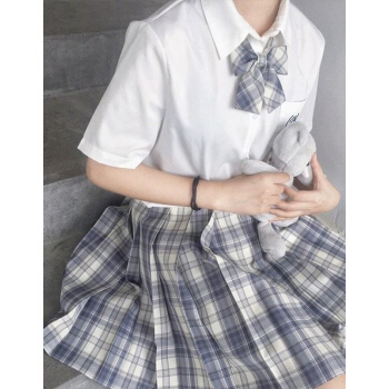 半身裙>>电竞少女jk制服温柔一刀格裙套装连衣裙中牌制服馆裙子学生校服百褶裙兔姬舍短裙A字裙包臀半身裙夏女 (格纹裙+刺绣上衣+领结)#1600 M