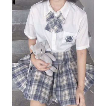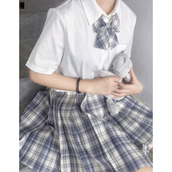 半身裙>>【全套】兔姬舍正统原创jk制服格子裙日系制服裙学院风高腰半身裙百褶裙衬衫套装学生校园风温柔一刀正品 女白浩海短袖+一刀短裙+领结 L