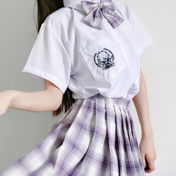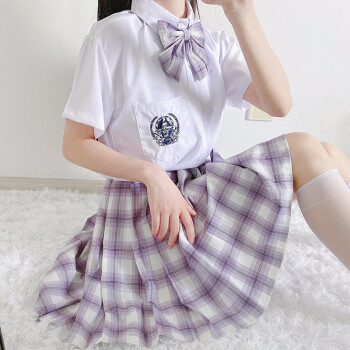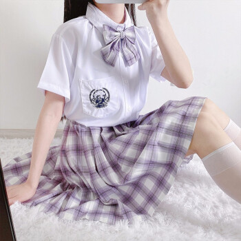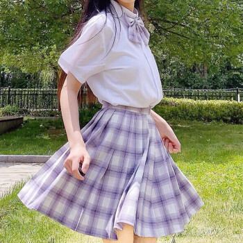 萧遇电竞少女jk制服温柔一刀格裙套装连衣裙中牌制服馆裙子学生校服百褶裙兔姬舍短裙A字裙包臀半身裙夏女 薰衣草格裙+刺绣衬衣+领结#209 M