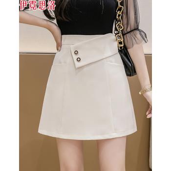 伊霓思洛半身裙女2020夏季高腰新款短裙子韩版A字裙时尚女装显瘦职业裤裙 黑色 M