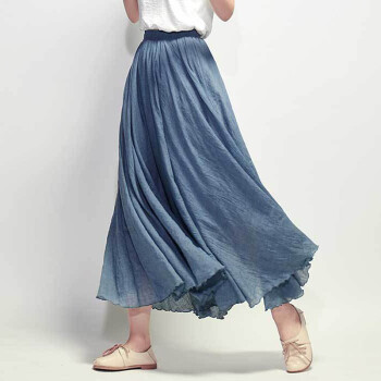 黛曦森女复古纯色大摆亚麻半身长裙夏中长款高腰文艺棉麻半身裙女裙子 珊珊色 M码裙长85cm