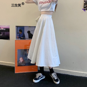 三生笑 白色半身裙女长裙夏季2020新款韩版高腰a字裙显瘦学生中长款裙子 白色 均码