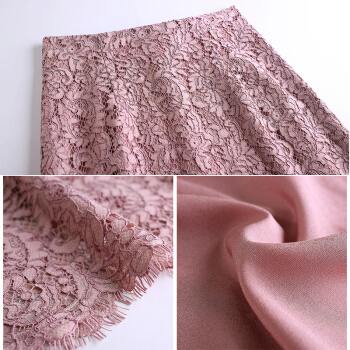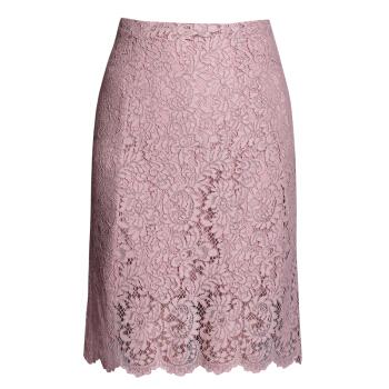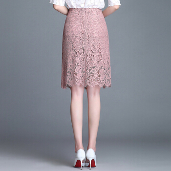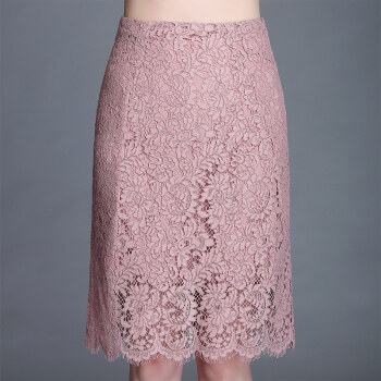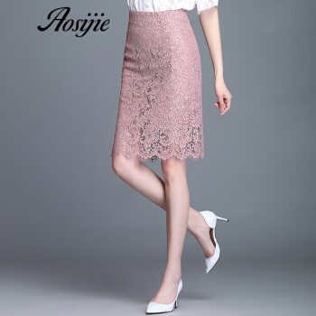 Aosijie轻奢品牌女装 高腰蕾丝包臀半身裙子2020春夏新款睫毛下摆蕾丝勾花中长款大码裙子 藕粉色 M
