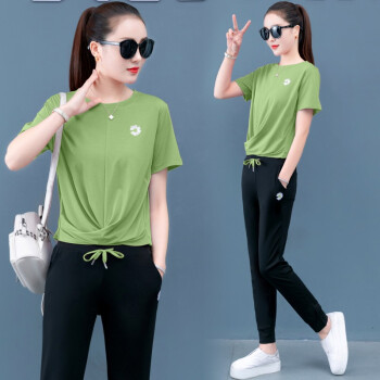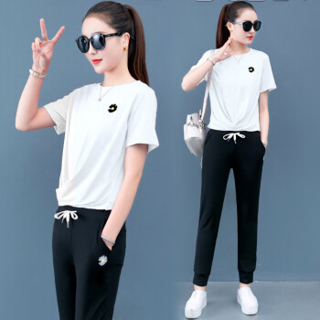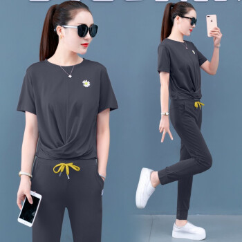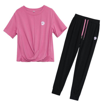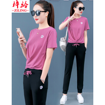 梓龄 休闲运动服套装女2020夏天新款韩版宽松短袖长裤洋气减龄女装休闲裤女两件套 豆沙色 请拍对应尺码