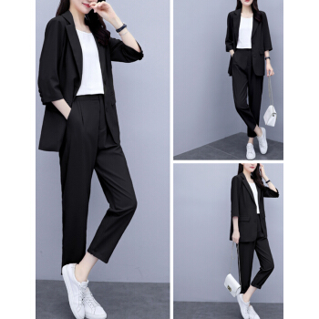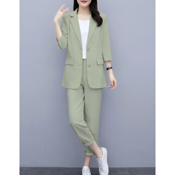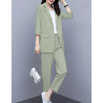 休闲裤>>婪澈休闲裤女2020年女装夏新款西装套装女韩版显瘦职业西服女时尚气质洋气职业两件套套装女 粉色 请拍正确尺码
