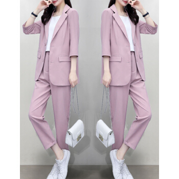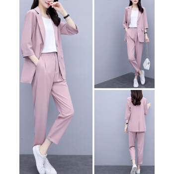 婪澈休闲裤女2020年女装夏新款西装套装女韩版显瘦职业西服女时尚气质洋气职业两件套套装女 粉色 请拍正确尺码 |