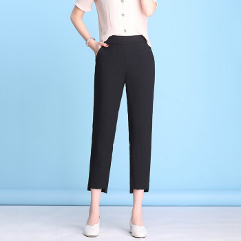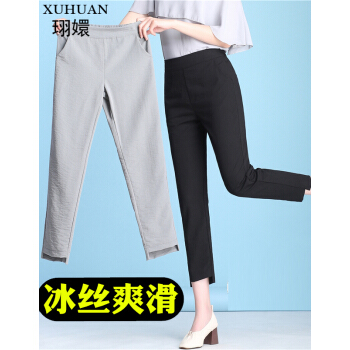 珝嬛休闲裤女2020夏季薄款新款显瘦棉麻亚麻学生萝卜裤女宽松工装九分裤百搭直筒运动裤子冰丝女裤潮 黑色 请拍自身对应码数