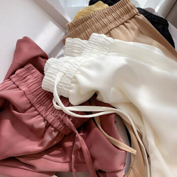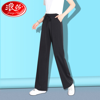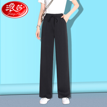 浪莎阔腿裤女高腰垂感夏季女装百搭显瘦休闲云朵裤宽松雪纺拖地裤子女 水墨黑 标准码(80-130斤可穿)