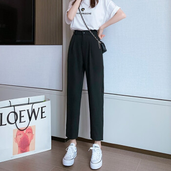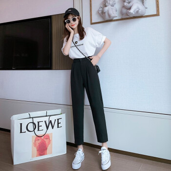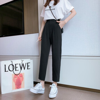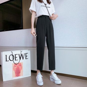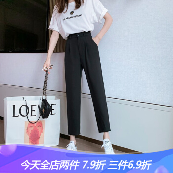 沫澜仟衣高腰显瘦休闲裤女2020夏季薄款韩版宽松直筒时尚百搭女士裤子轻薄透气九分裤子女外穿 黑色 2XL