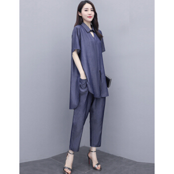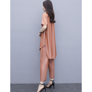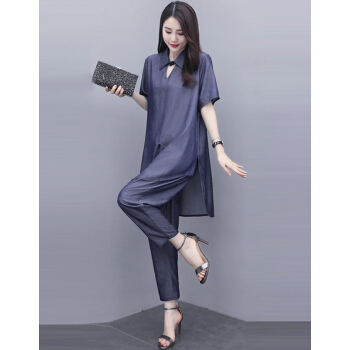 婪澈休闲裤女时尚妈妈装两件套2020年女装夏季新款洋气大码宽松中年人成熟套装女 黑灰色 请拍正确尺码