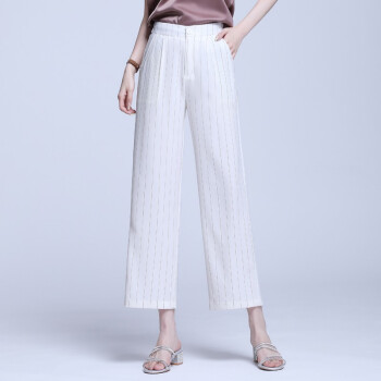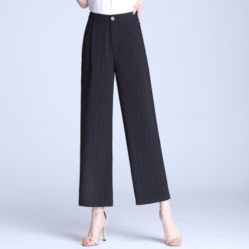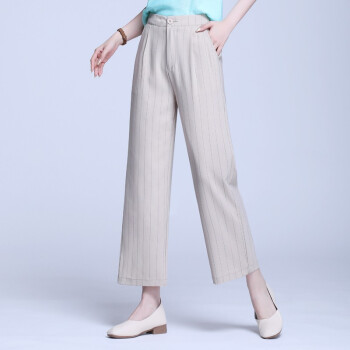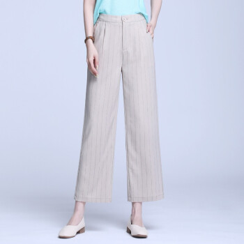 信和祥休闲裤女高腰条纹阔腿裤女2020春夏季新品韩版弹力垂感加大码直筒裤女士长裤 杏色 3XL【31】 |