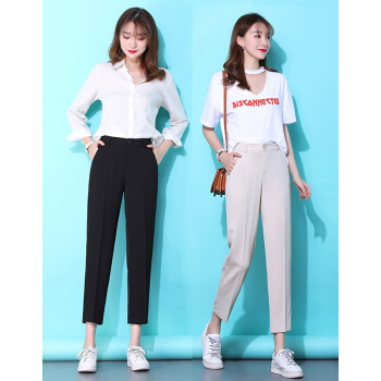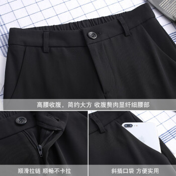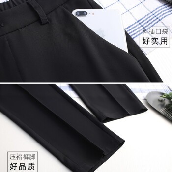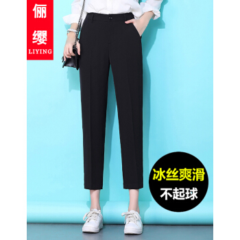 休闲裤>>俪缨休闲裤女西装裤宽松直筒2020春秋新款高腰ins坠感工装裤九分显瘦黑色百搭萝卜烟管女裤子大码女装 黑色九分 L(建议105-115斤)