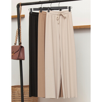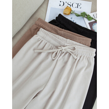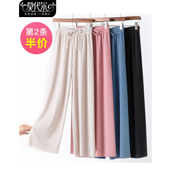 莫代尔冰丝阔腿裤女春秋九分休闲裤夏高腰垂感小个子显瘦宽松百搭直筒西装运动哈伦 黑色九分(建议85-135斤)