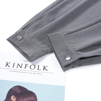 休闲裤>>阔恋冰丝休闲裤女夏季薄款束脚西装裤2020新品直筒宽松高腰哈伦裤子百搭显瘦九分裤韩版松紧腰萝卜女裤 灰色 M