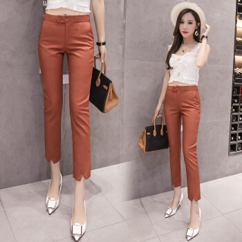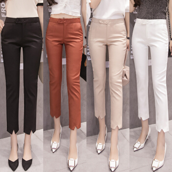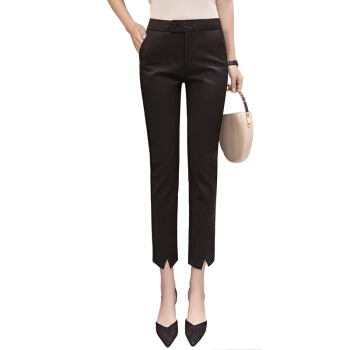 雅依芸汐 休闲裤女西裤2020新款夏季九分直筒铅笔职业工作小脚裤子女裤夏薄 黑色 L