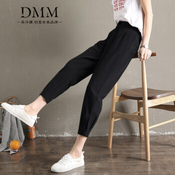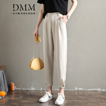 朵沐缦 束脚休闲裤女高腰显瘦2020夏季薄款哈伦裤时尚韩版百搭西装裤直筒宽松九分萝卜裤潮 1680-1薄款 灰色 L