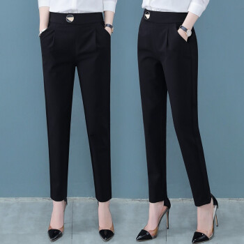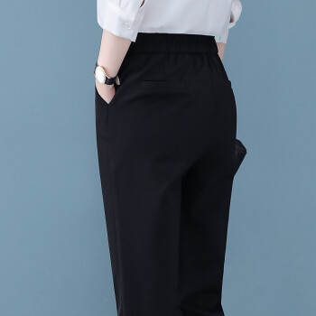茉玥女裤松紧腰休闲裤女2020夏季薄款气质宽松大码女装小脚裤韩版九分裤女士夏装黑色裤子哈伦裤 黑色 请拍下正确尺码