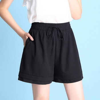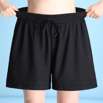 短裤>>梓龄 短裤女运动裤女2020新款夏季加肥加大码冰丝棉麻短裤女百搭休闲阔腿外穿运动裤薄款三分裤 黑色 请拍对应尺码