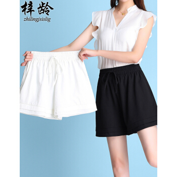 梓龄 短裤女运动裤女2020新款夏季加肥加大码冰丝棉麻短裤女百搭休闲阔腿外穿运动裤薄款三分裤 黑色 请拍对应尺码 |