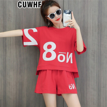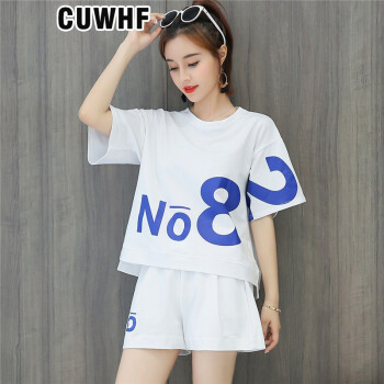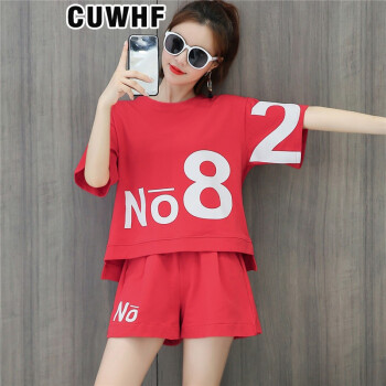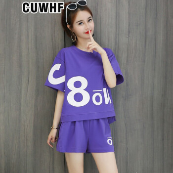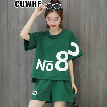 CUWHF 短裤女休闲套装女短裤运动服夏季新款2020时尚胖MM大码短袖T恤两件套潮 绿色 L