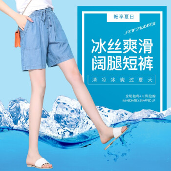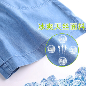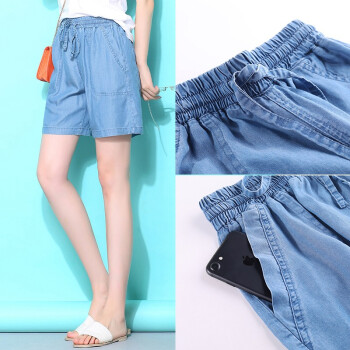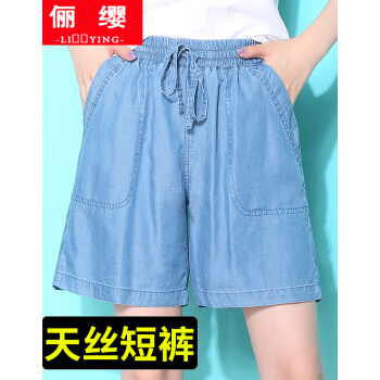俪缨短裤女天丝牛仔五分裤女2020年新款学生休闲宽松外穿夏季薄款女士冰丝裤子松紧腰薄款垂坠阔腿裤女 图片色 L(建议110-120斤)
