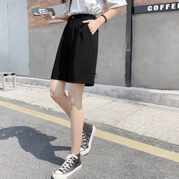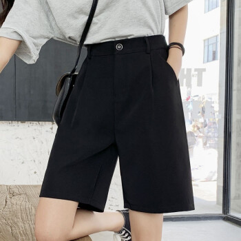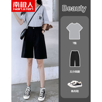 南极人 西装短裤女夏宽松2020新款休闲显瘦黑色直筒雪纺高腰阔腿裤五分减龄中裤 YYR892 黑色-真门襟 请拍正确尺码