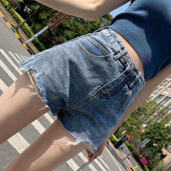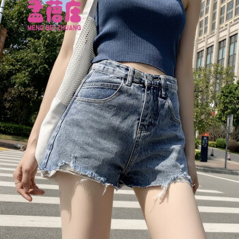 孟蓓庄休闲牛仔短裤女夏季2020年新款潮ins高腰显瘦宽松阔腿网红a字泫雅热裤宽松a字百搭阔腿热裤 复古蓝 M(90-105斤)
