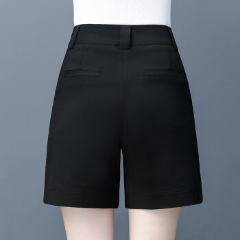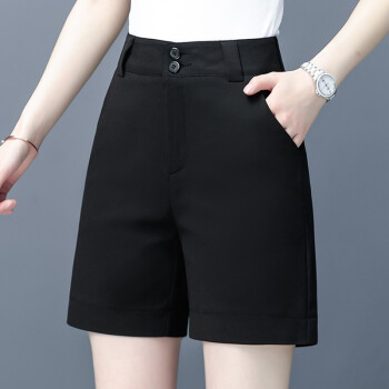 吧吆吆白色短裤女夏宽松2020新款高腰直筒西装五分中裤显瘦阔腿休闲裤薄 黑色 XL