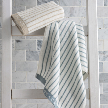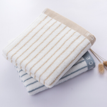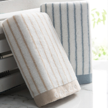 毛巾浴巾>>洁丽雅(Grace)毛巾家纺 经典条纹系列纯棉强吸水毛巾 二条装 兰/棕 72*34cm