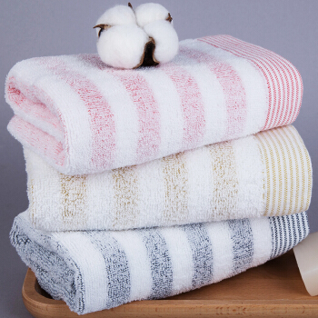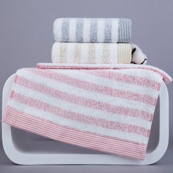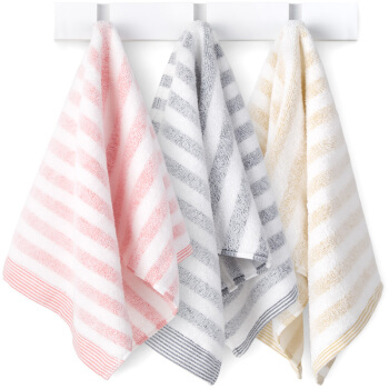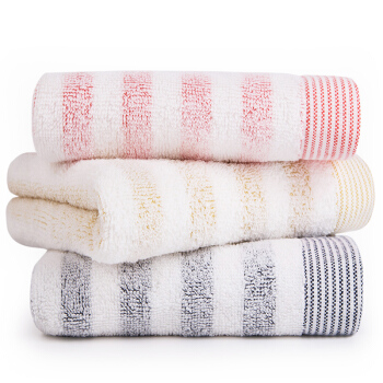 三利 毛巾3条装 纯棉条纹洗脸巾 33*72cm 红色/蓝色/黄色